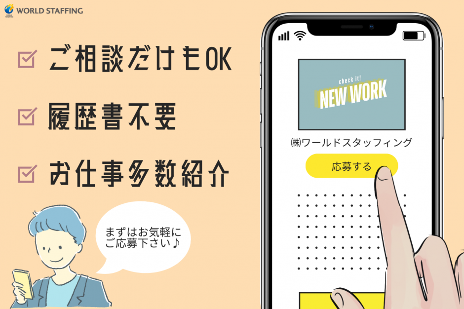 ワールドスタッフィングではあなたにあったオシゴトをご紹介いたします♪